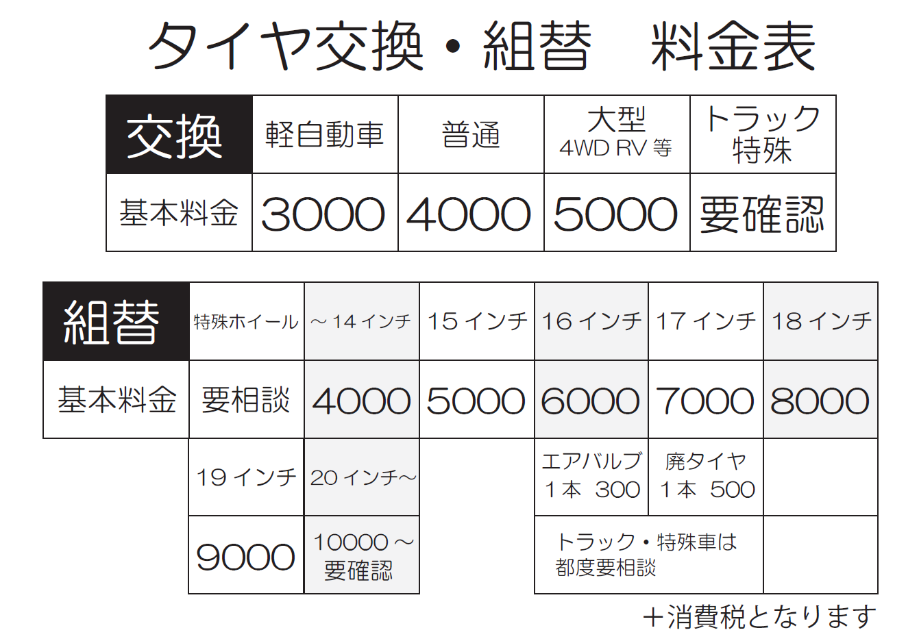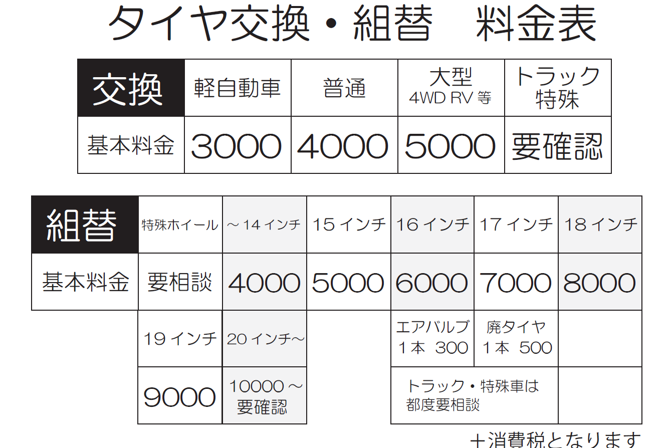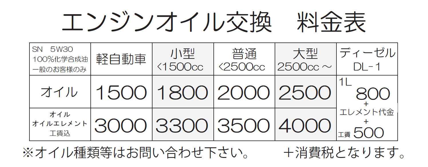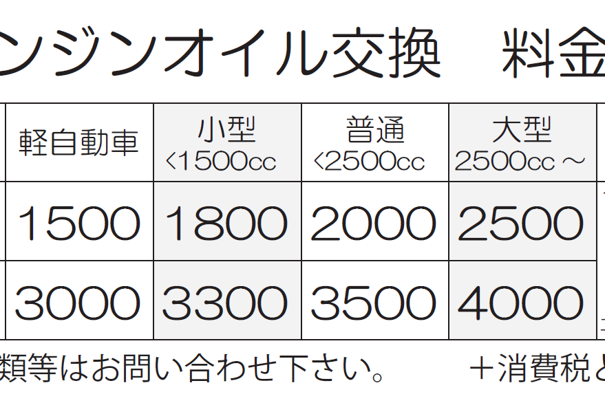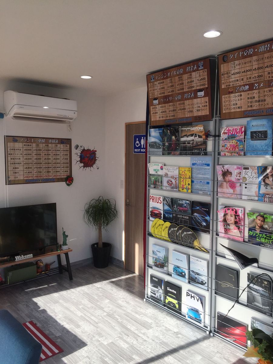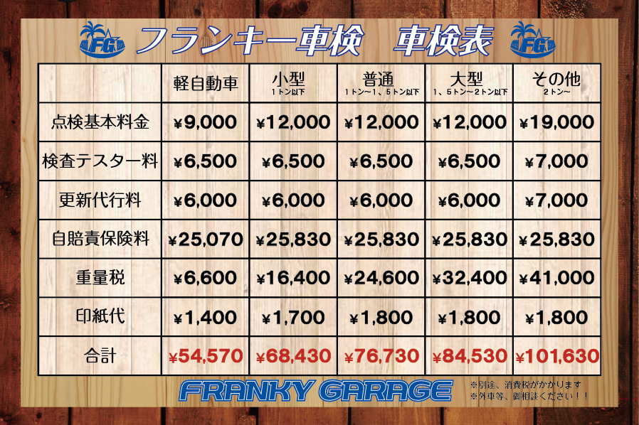 ☆フランキー車検☆ 国土交通大臣認証工場だから安心!! 車検基本料金表 代車無料!様々な割引や特典があります!! ☆タイヤ交換☆ 持ち込み交換も歓迎します! タイヤ交換工賃料金表 22インチまで対応!!スナップオン製タイヤチェンジャー!! ☆オイル交換☆ 化学合成油SN-CF5W30仕様 オイル交換、交換料金表 安い!早い!丁寧!任せて安心!!